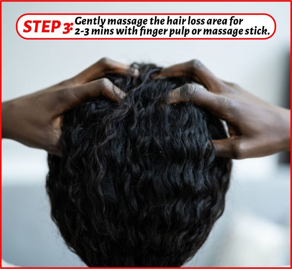Gently massage the hair loss area for 2-3 mins with finger pulp or massage stick.