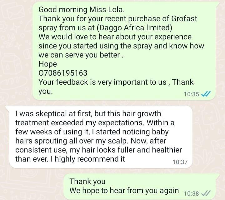 Thanks to Grofast Hair Growth Spray, I can truly embrace my natural beauty and share it with the world.
