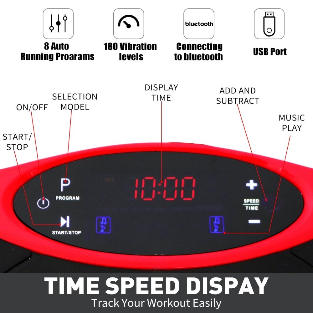 Just 3 x 10 minute session per day is equivalent to spending 2 hours training with no strain on the joints or the heart as the vibrating plate moves smoothly with speeds from 1-50 levels.